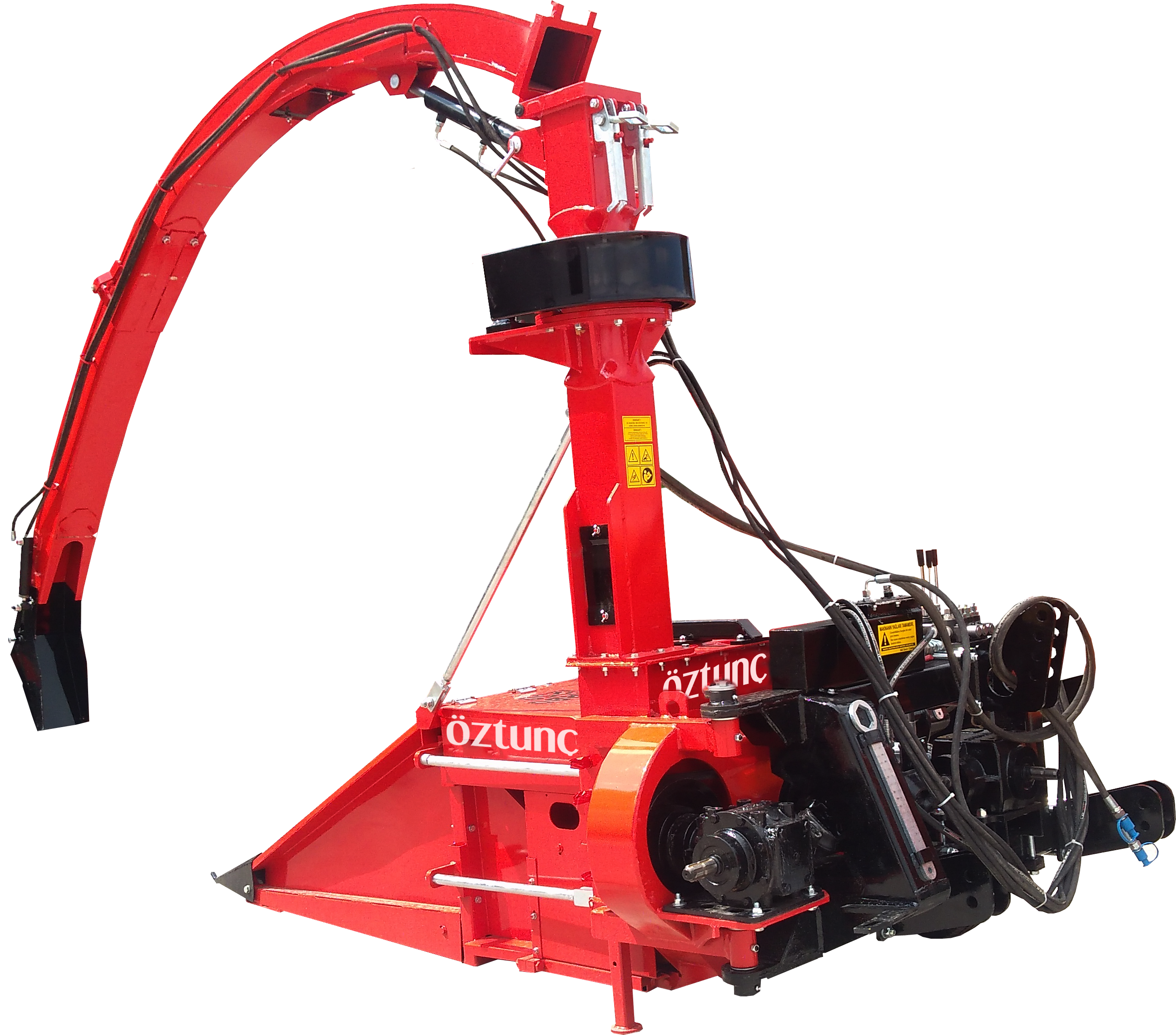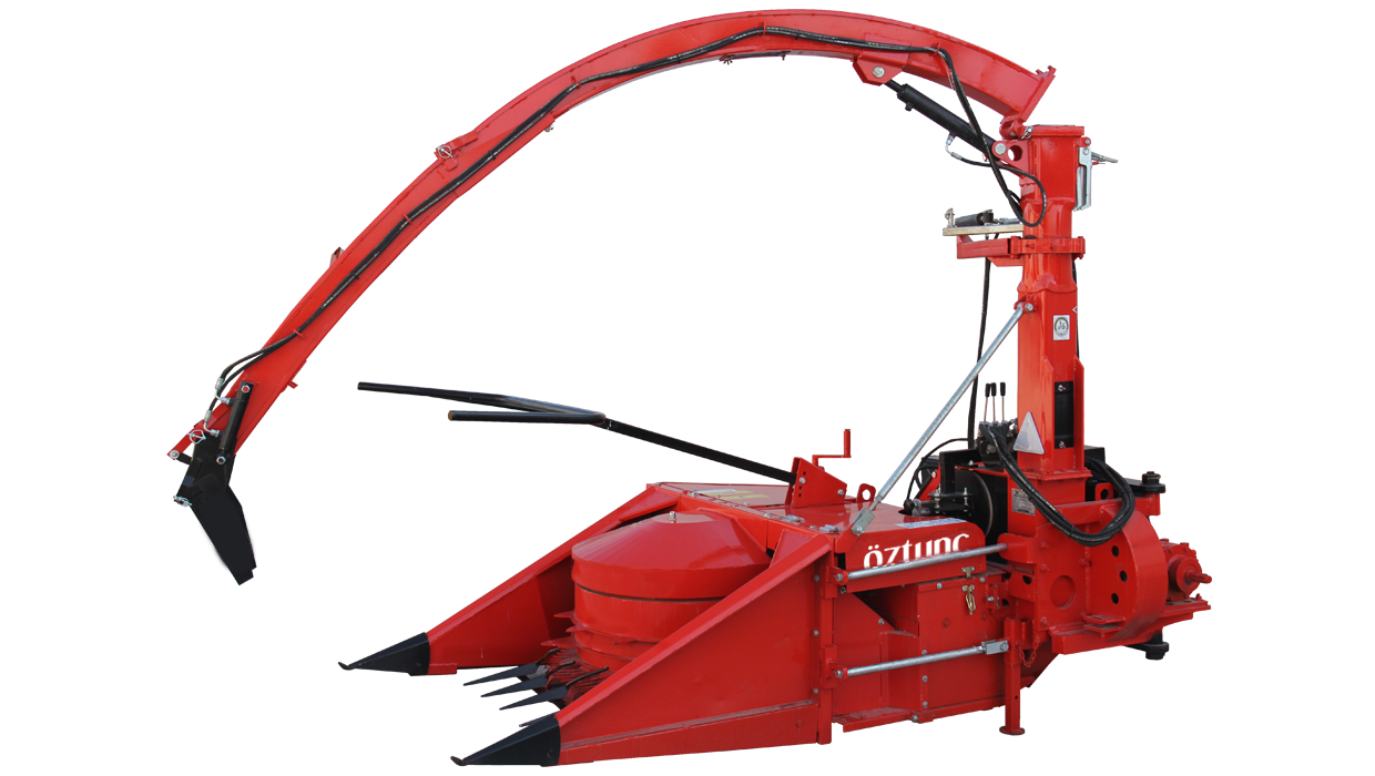 • Makine 1.25 metre genişliğindeki kesici ve besleyici tambur sayesinde sıra gütmeden hasat edebilmektedir. Makinenin en önemli özelliklerinden biri bükülebilir şase tasarımı sayesinde traktörün arkasına çevrilerek geriye doğru hasada imkan tanımasıdır. Bu özellik sayesinde tarlanın ortasında yol açılarak, daha az tur atılabilmekte ve mazot sarfiyatı azaltılabilmektedir Kesici ve besleyici tambur mısırları keserek besleyici üniteye iletmektedir.. Besleyici ünite, üzerinde parçalayıcı bıçaklar olan fanı, doğru açıda besleyerek en iyi kalitede parçalamayı sağlar. Üzerinde 12 adet özel olarak sertleştirilmiş bıçak olan fan yaklaşık olarak 1400 dev./dak. süratle dönmektedir. Mısırın parçalayıcı fana gitmesini sağlayan iki adet besleyici tambur, iki adet de baskı tamburu bulunmaktadır.